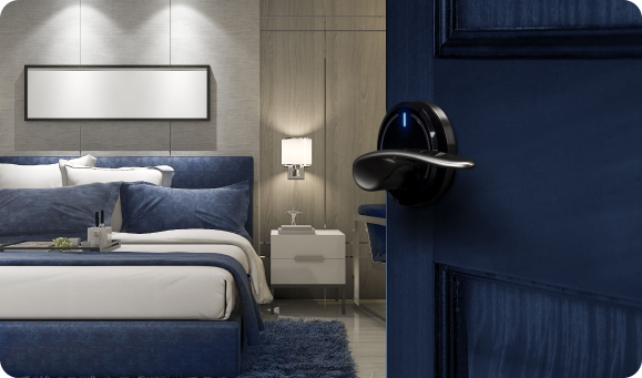 The Serene™ lock combines minimalistic design with top-tier security, featuring DirectKey™ technology protected by 128-bit AES encryption. Customise the look with various lever styles and finishes to match your hotel’s aesthetic.